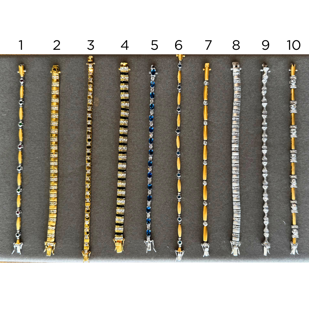 Brazaletes tipo tennis de plata 925 con baño de oro de 18k con circones.