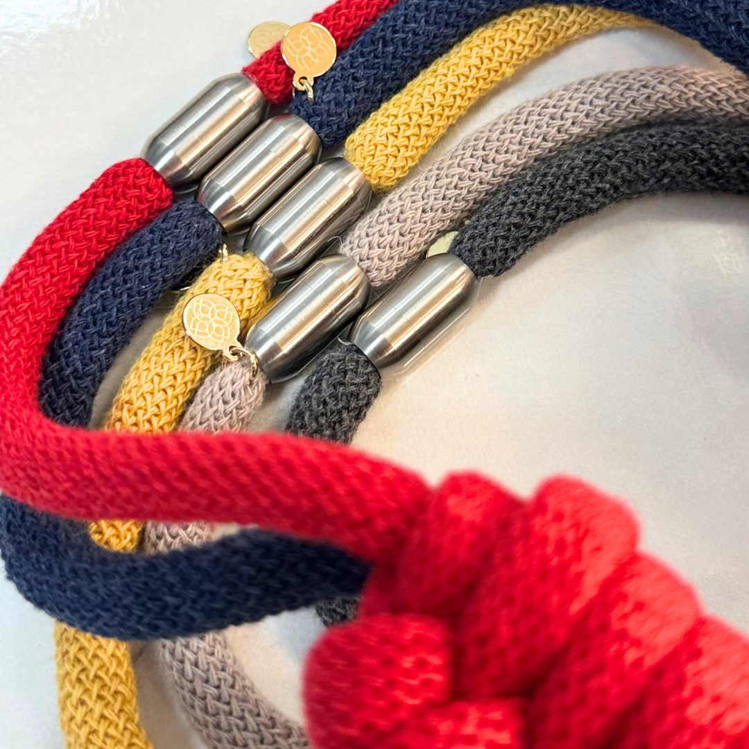 El collar Mandy está elaborado con cordón de algodón suave y tiene un cierre magnético en forma de tubo de acero inoxidable para abrir y cerrar.
