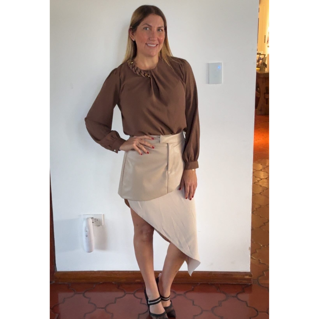 Falda media pierna cuerina con tela.