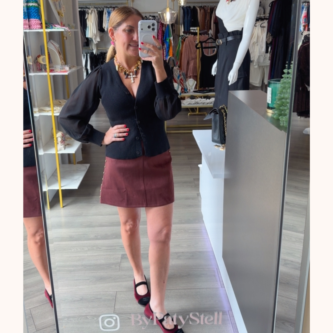 Falda de gamusa con chapas doradas